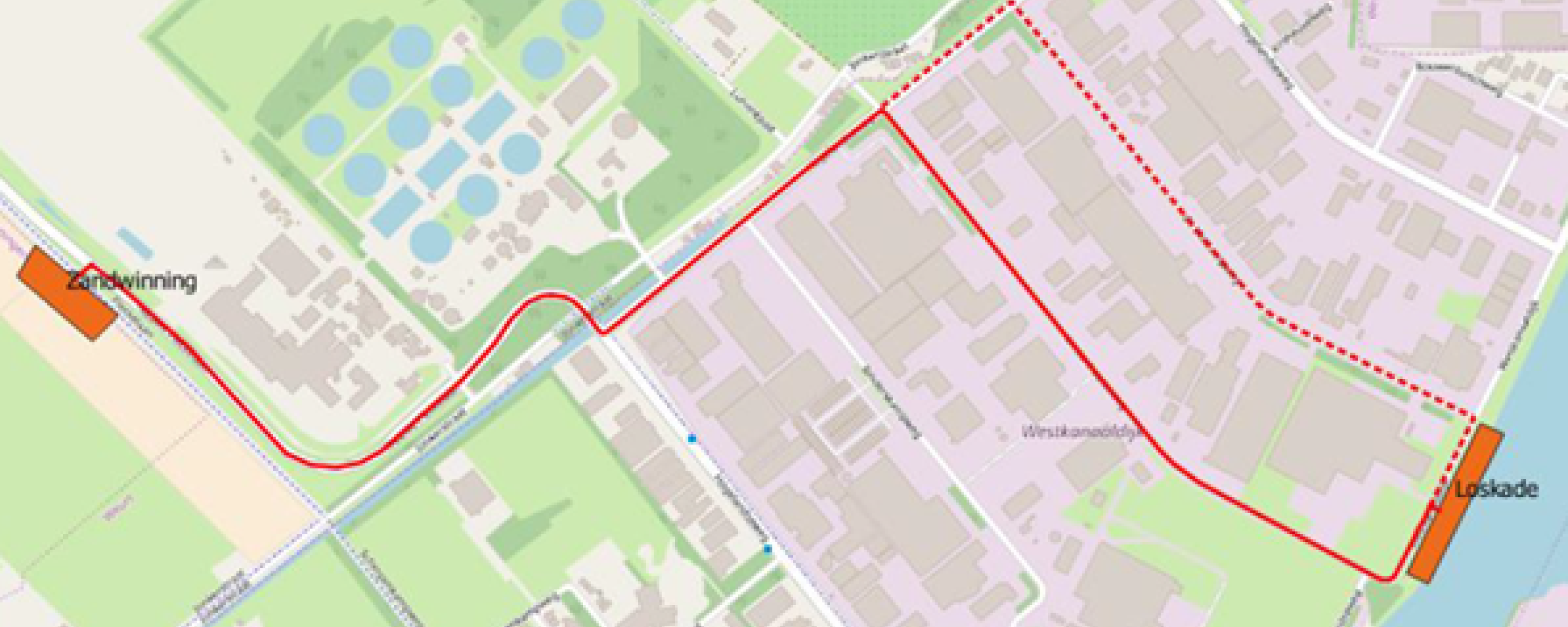 De route vanaf de Beuningse Plas tot aan de losplaats gaat via de Nieuwe Pieckelaan, Hogelandseweg, Lindenhoutseweg, Westkanaaldijk (losplaats) en weer terug. Dit is tevens de kortst mogelijke route met de minste overlast voor omwonenden.